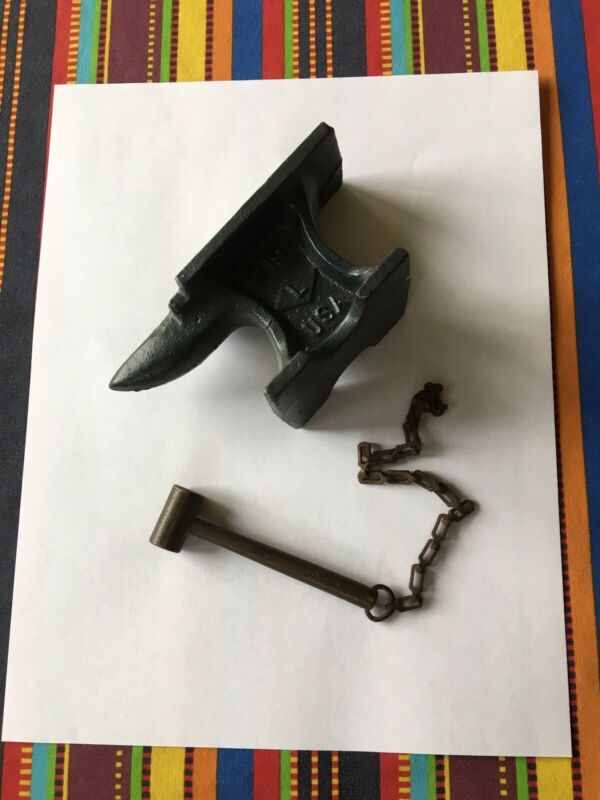 Vintage Mini Cast Iron Anvil & Hammer for Jewelers Gunsmiths Locksmiths USA 219L