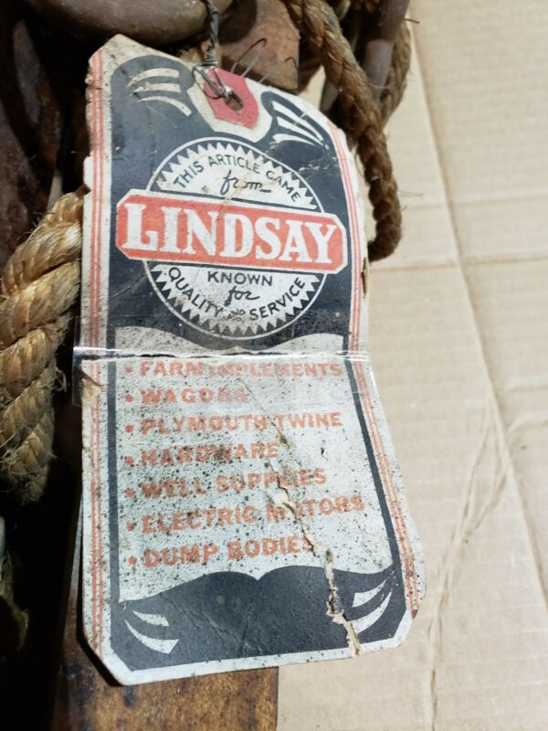 Title (ebay affiliate link): ANTIQUE HAY/STRAW SLING NEW Vintage Barn Rope Hoist Carrier Trolley LINDSAY BROS
