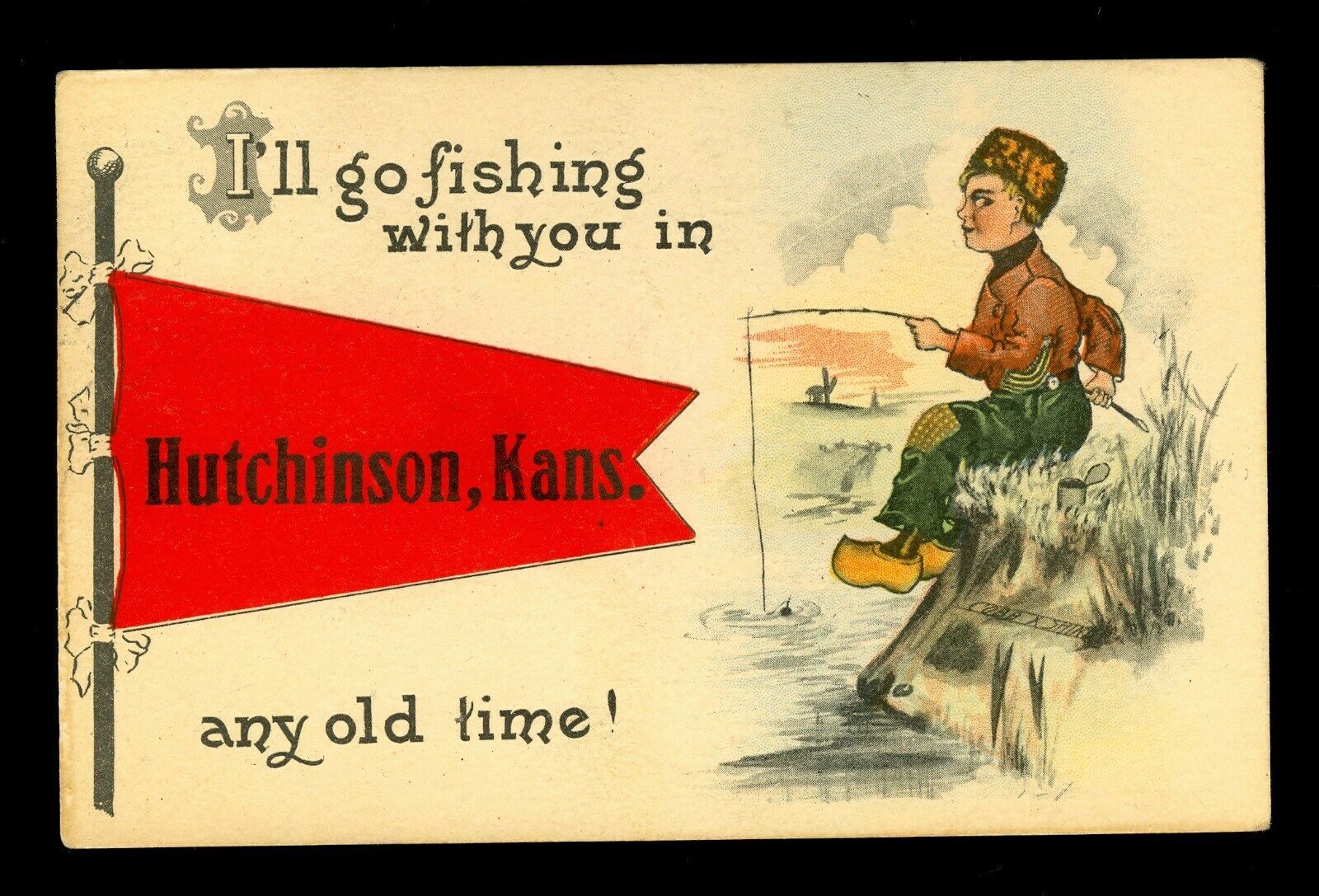 Title (ebay affiliate link): 1910s Hutchinson Kansas Dutch Fishing McPherson Comic Postcard RPO Postmark A39