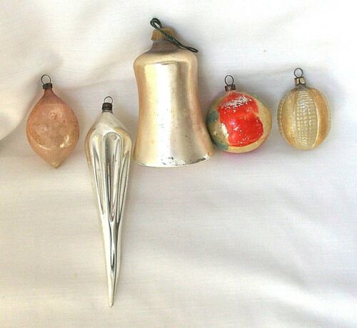 5 Antique Glass Christmas Ornaments Germany & More Bell End of Day & Teardrop