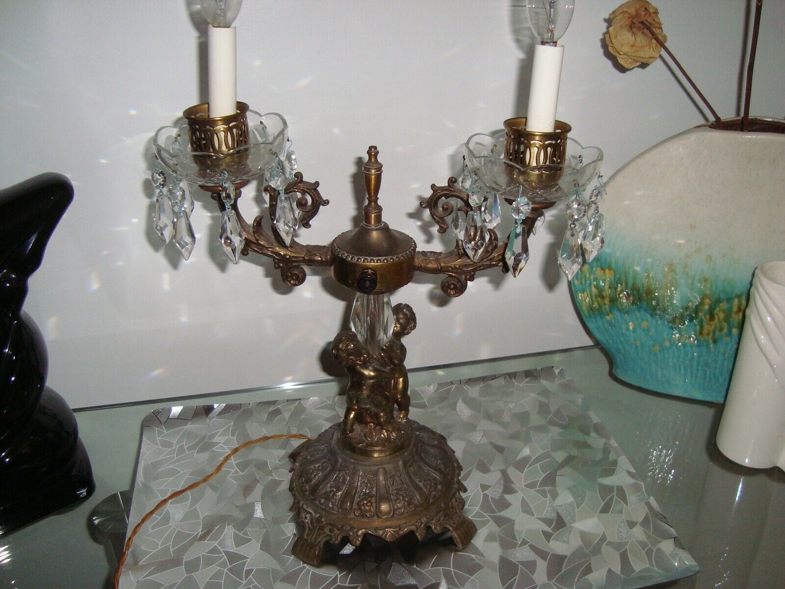 Title (ebay affiliate link): ANTIQUE 1940''s ELECTRIC CANDELABRA TABLE LAMP WITH CHERUBS AND HANGING CRYSTALS