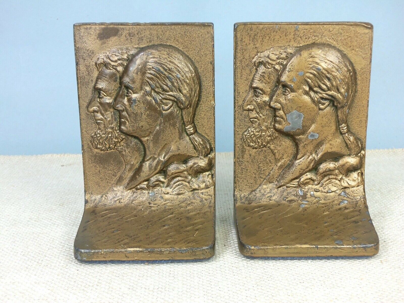 Title (ebay affiliate link): Washington & Lincoln Bookends by Kronheim & Oldenbusch circa 1920''s