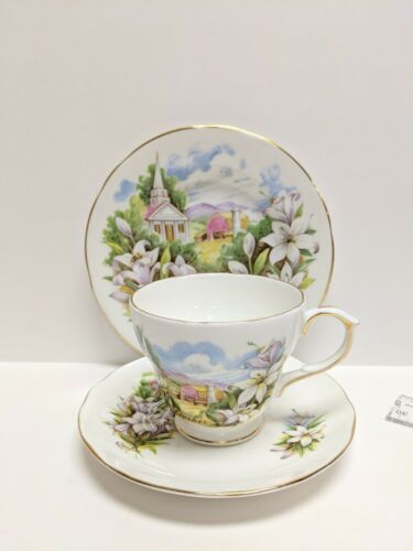 Title (ebay affiliate link): DUCHESS BONE CHINA TEA CUP SAUCER ENGLAND QUEBEC FLORAL GOLD GILT SET OF 3 NICE