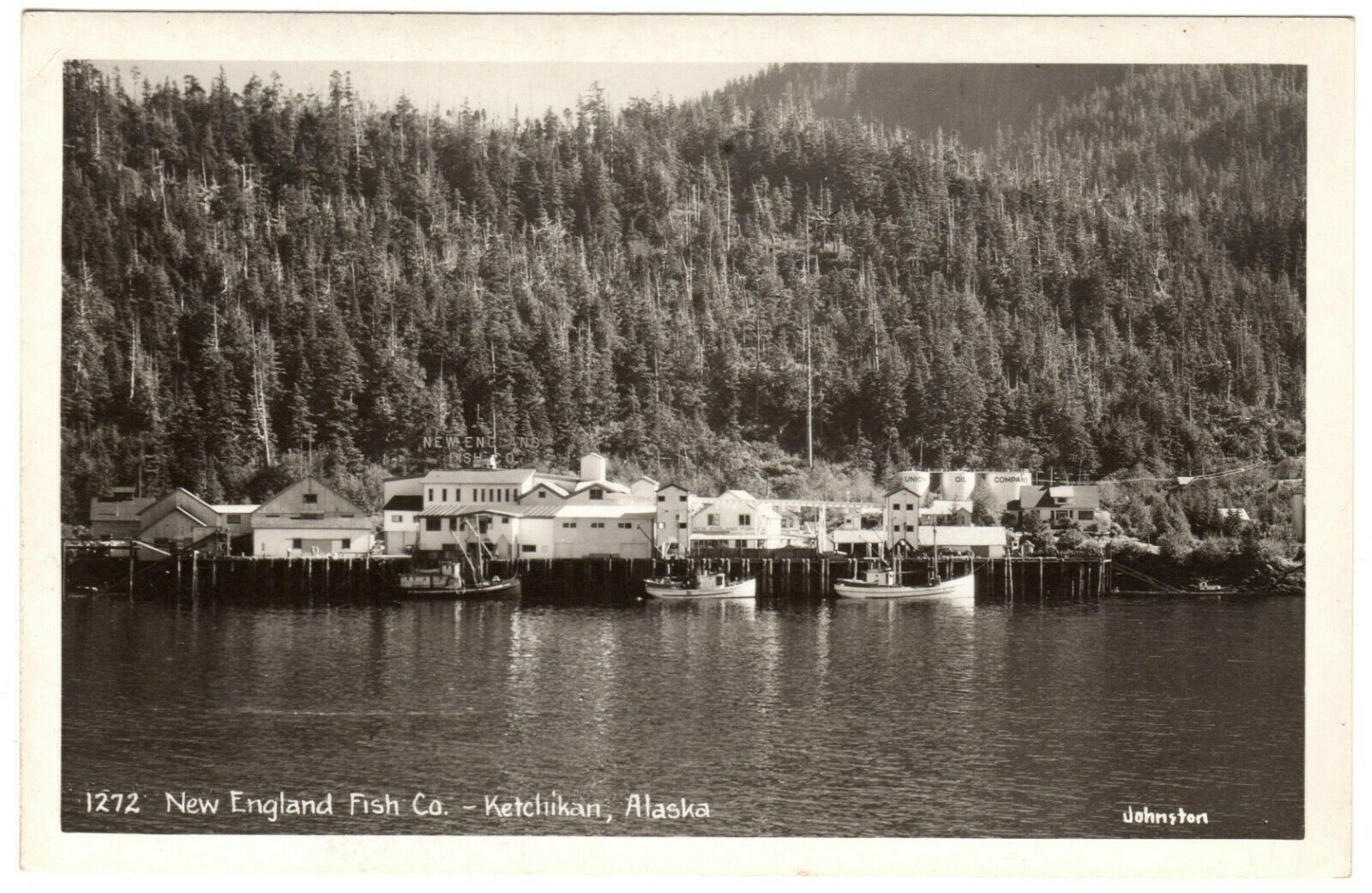Title (ebay affiliate link): KETCHIKAN AK - New England Fish Co. - RPPC Alaska Real Photo Postcard 1950s