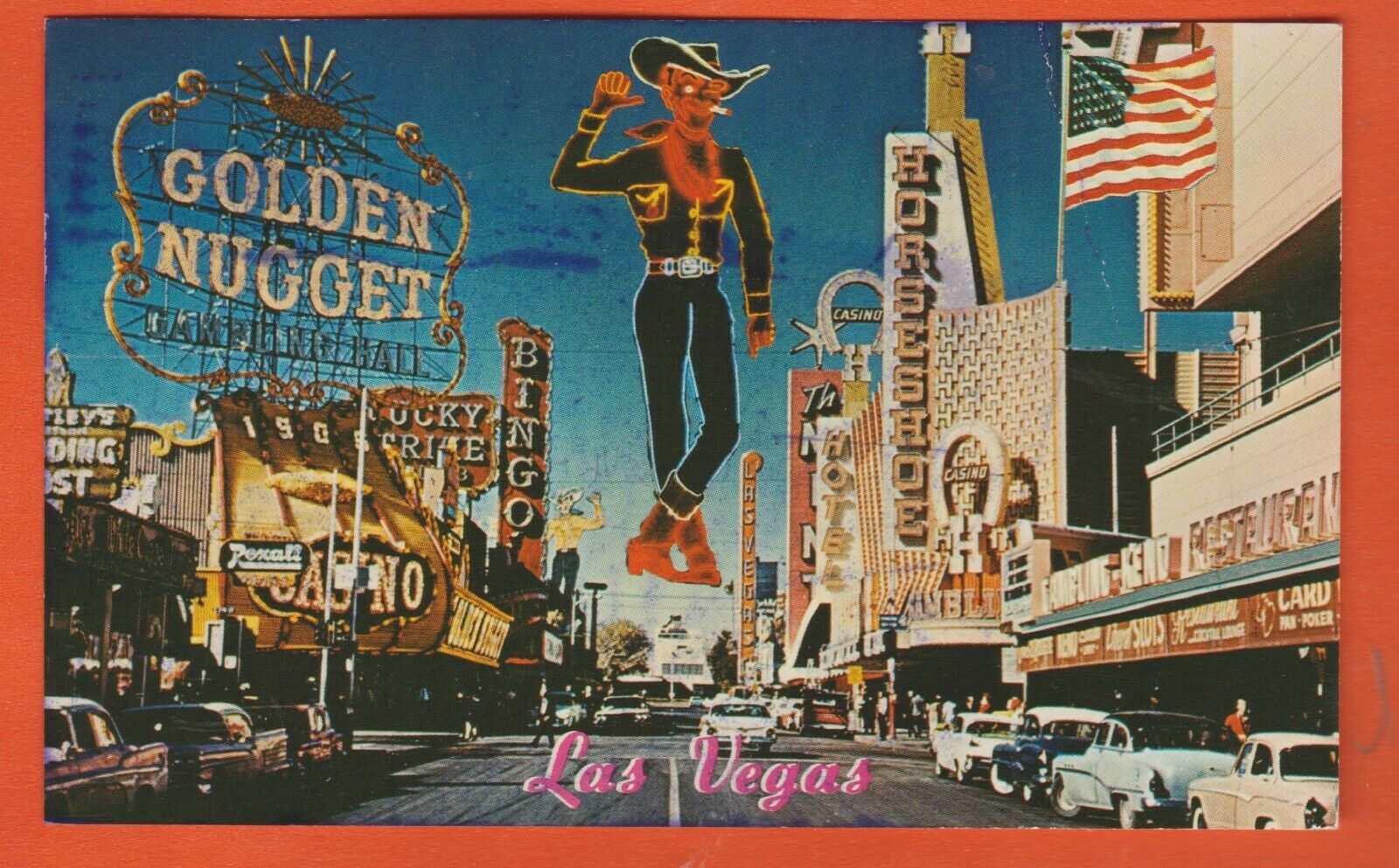 Las Vegas, Nv/ Fremont St/ signs/ old cars/ stores/ casinos/ chrome postcard