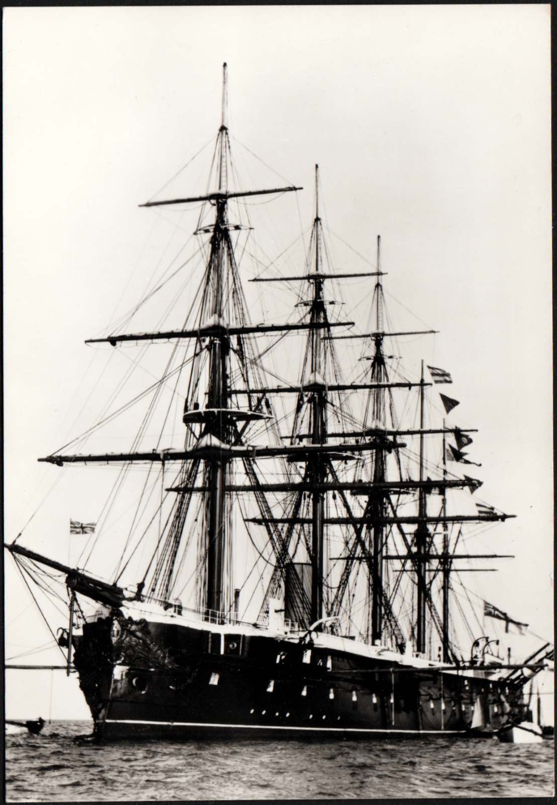 H.M.S. "Agincourt" Sailing Battleship Real Photo Data Card