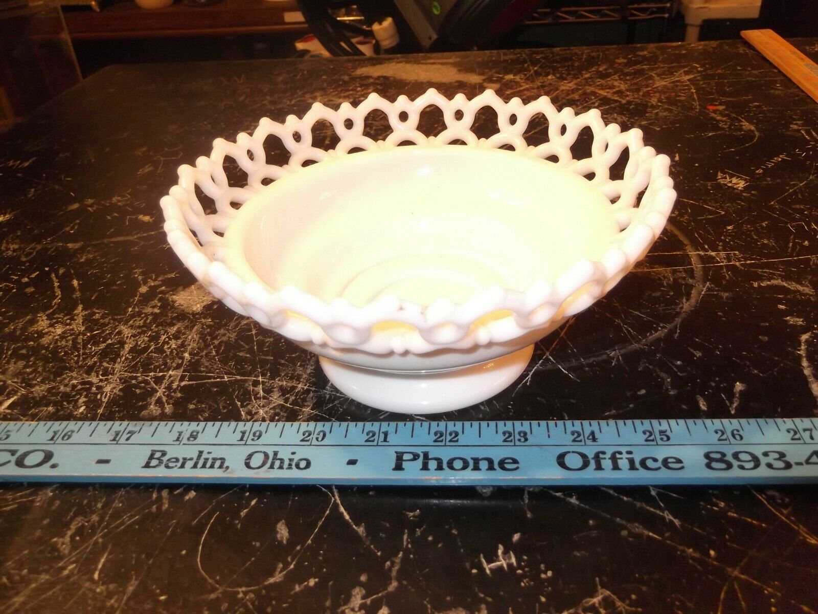 Title (ebay affiliate link): Westmoreland Lace Edge Milk Glass Centerpiece Candle Holder