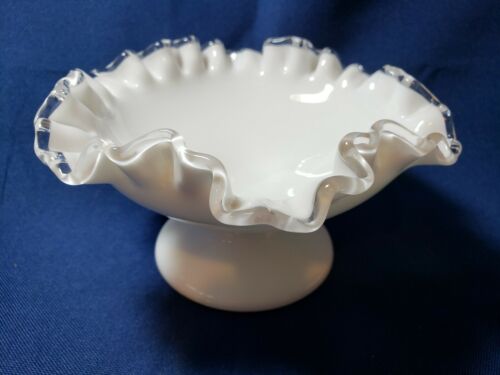 Vintage Fenton White Milk Glass Silver Crest Footed Compote Bowl Candy Dish