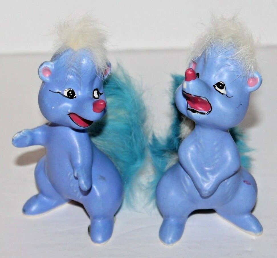 Pair vintage NORCREST Porcelain Blue Animal Figurines,Skunks? Furry Heads/Tail