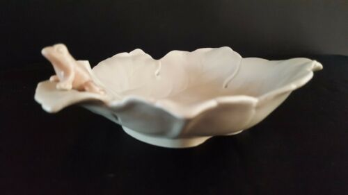 VINTAGE FITZ AND FLOYD CERAMIC LEAF TRINKET DISH with PINK FROG - CREAM/PINK