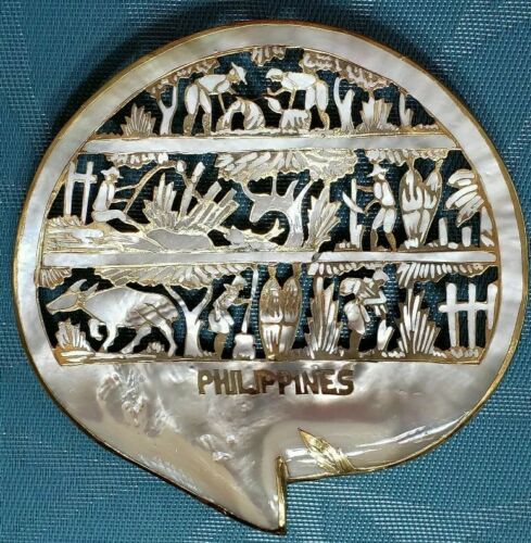 Title (ebay affiliate link): PHILIPPINES CARVED GOLDEN MOTHER OF PEARL SHELL PLATE DECOR ANTIQUE 319