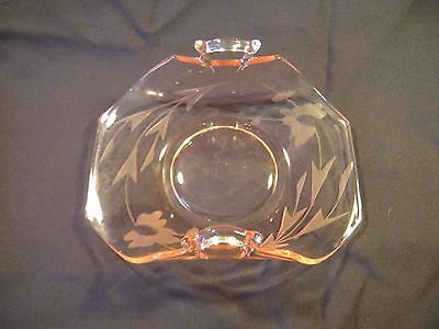 Title (ebay affiliate link): Pink Depression Etched Floral Glass Banana Boat Handled Bowl, Mint Condition.