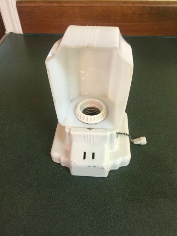 Title (ebay affiliate link): Vintage 30s Porcelain Sconce Wall Light Fixture with Milk Glass Globe Pull Chain