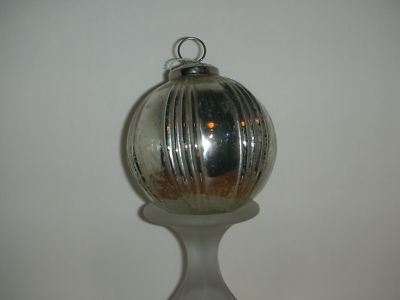 Kugel Style Silver Mercury Glass Ribbed Ornament