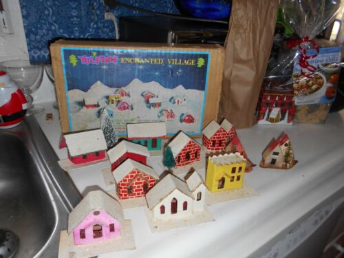 Vintage 1950''''s Yuletide Enchanted Christmas Miniature Village 11 houses