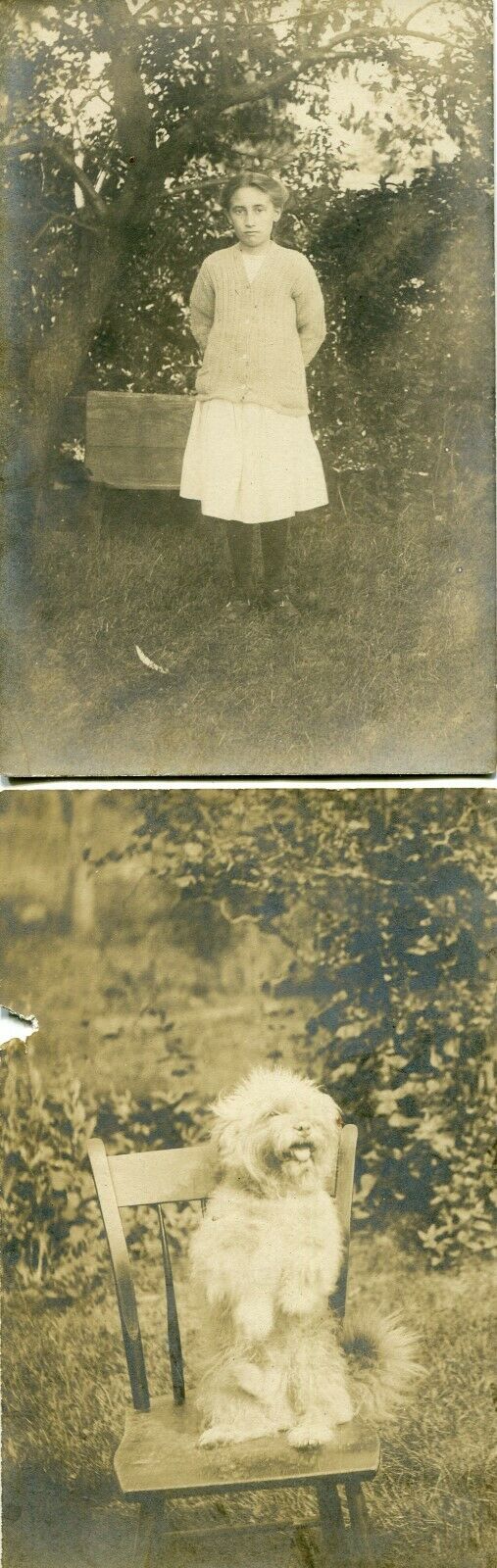 PAIR OF DUXBURY, MA REAL PHOTO P-CARDS SAME FAMILY MURIEL JOHNSON & DOG FLUFFY