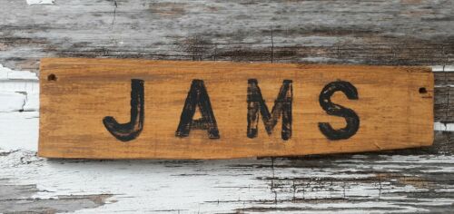 Old early Primitive antique farm chippy Barn farm mustard wood JAMS sign