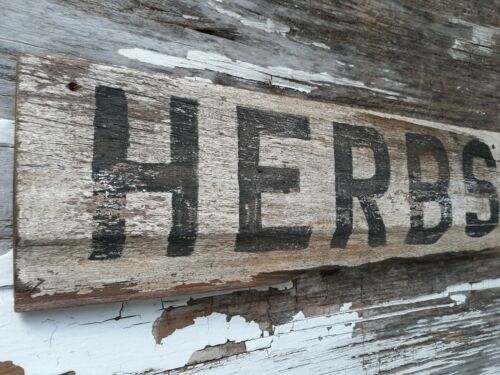 Old early Primitive antique farm chippy Barn white wood HERBS sign vintage