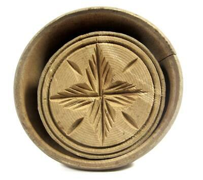 Antique 19thC QUARTERED LEAF BUTTER MOLD Primitive Treen Decor Farmhouse Design