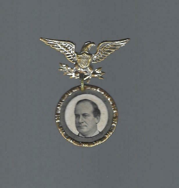 1900 era WILLIAM J. BRYAN FANCY EAGLE HANGER PICTURE CAMPAIGN BADGE