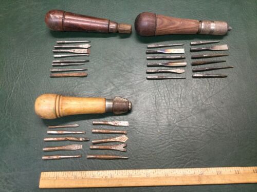Three Vtg Wood Handle Storage Multi-Tools w/ Bits ~ Buell Bros, Millers Falls
