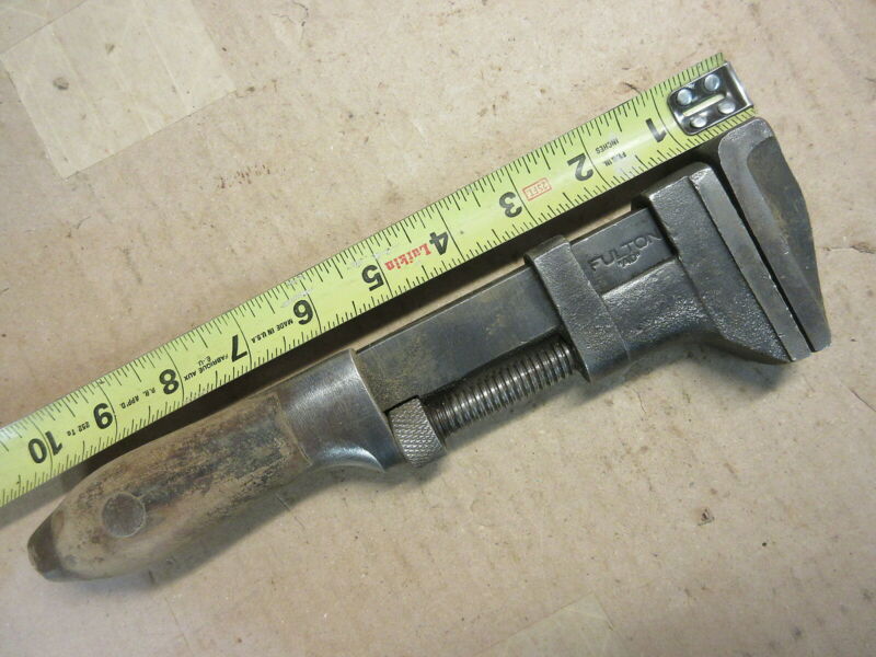 antique fulton monkey wrench 10-3/8" long with wood handle grip old farm tool