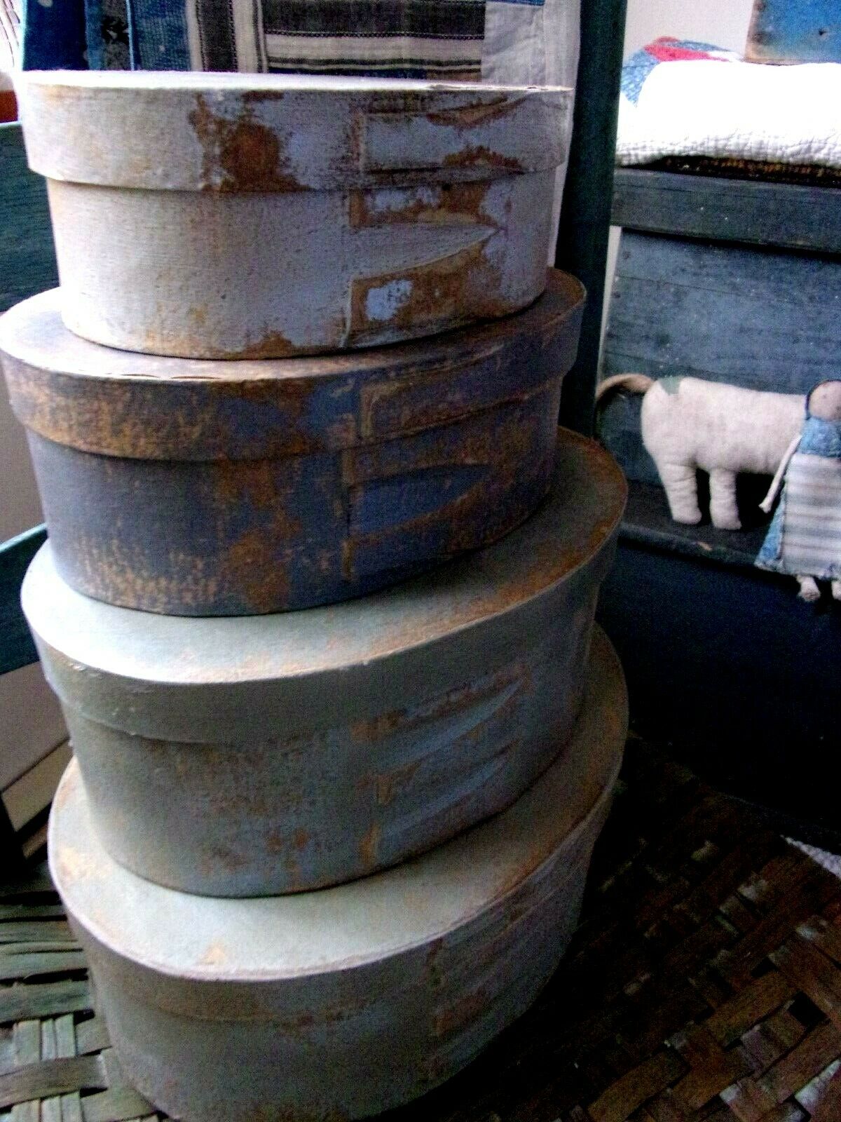 Primitive stack of boxes Muted blues!!