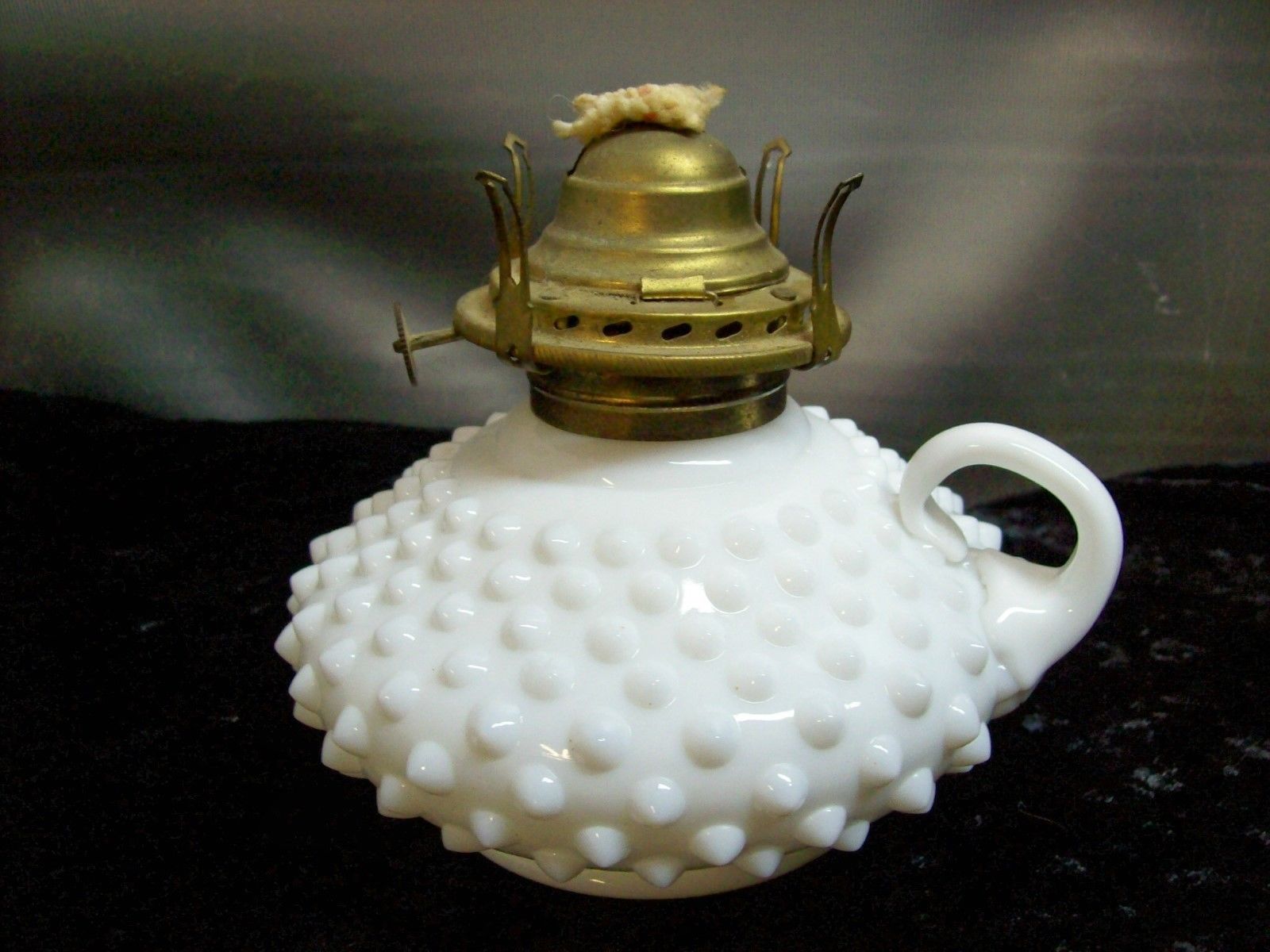 Title (ebay affiliate link): Vintage Milk Glass Hobnail Oil Lamp With Handle- Screw on Top & Wick Base Only