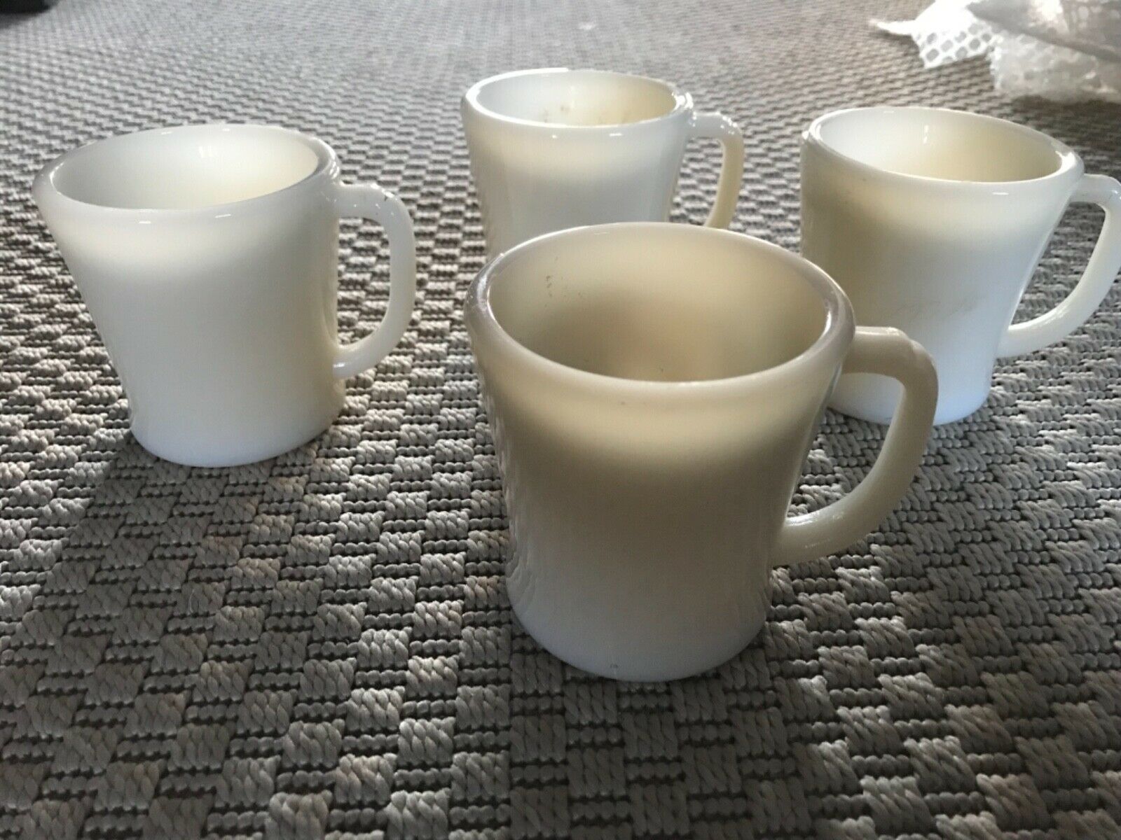 Title (ebay affiliate link): 4 Vintage Fire-King Anchor Hocking White Milk Glass Coffee Cups/Mugs D Handle
