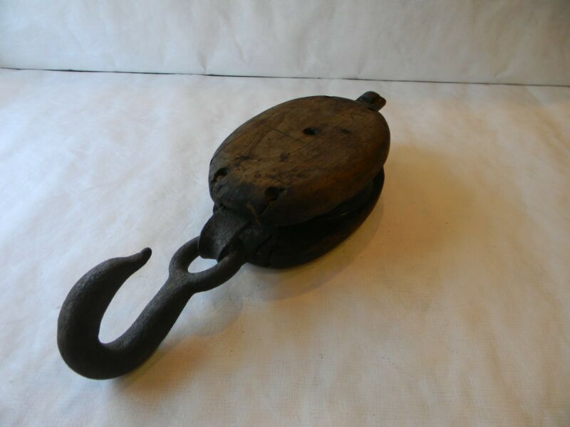 Title (ebay affiliate link): Primitive Single Pulley Farm Barn Wood Metal Tool Block tackle Vintage Nautical