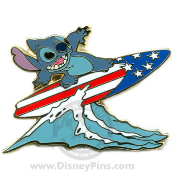 Title (ebay affiliate link): Disney Pin Stitch Surfing with Patriotic Surfboard