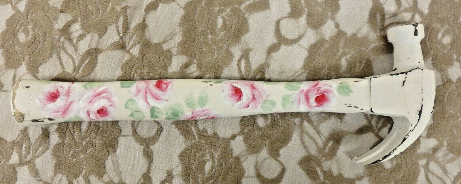 Title (ebay affiliate link): SHABBY HAND PAINTED CLAW HAMMER - HP PINK ROSES - VINTAGE COTTAGE CHIC