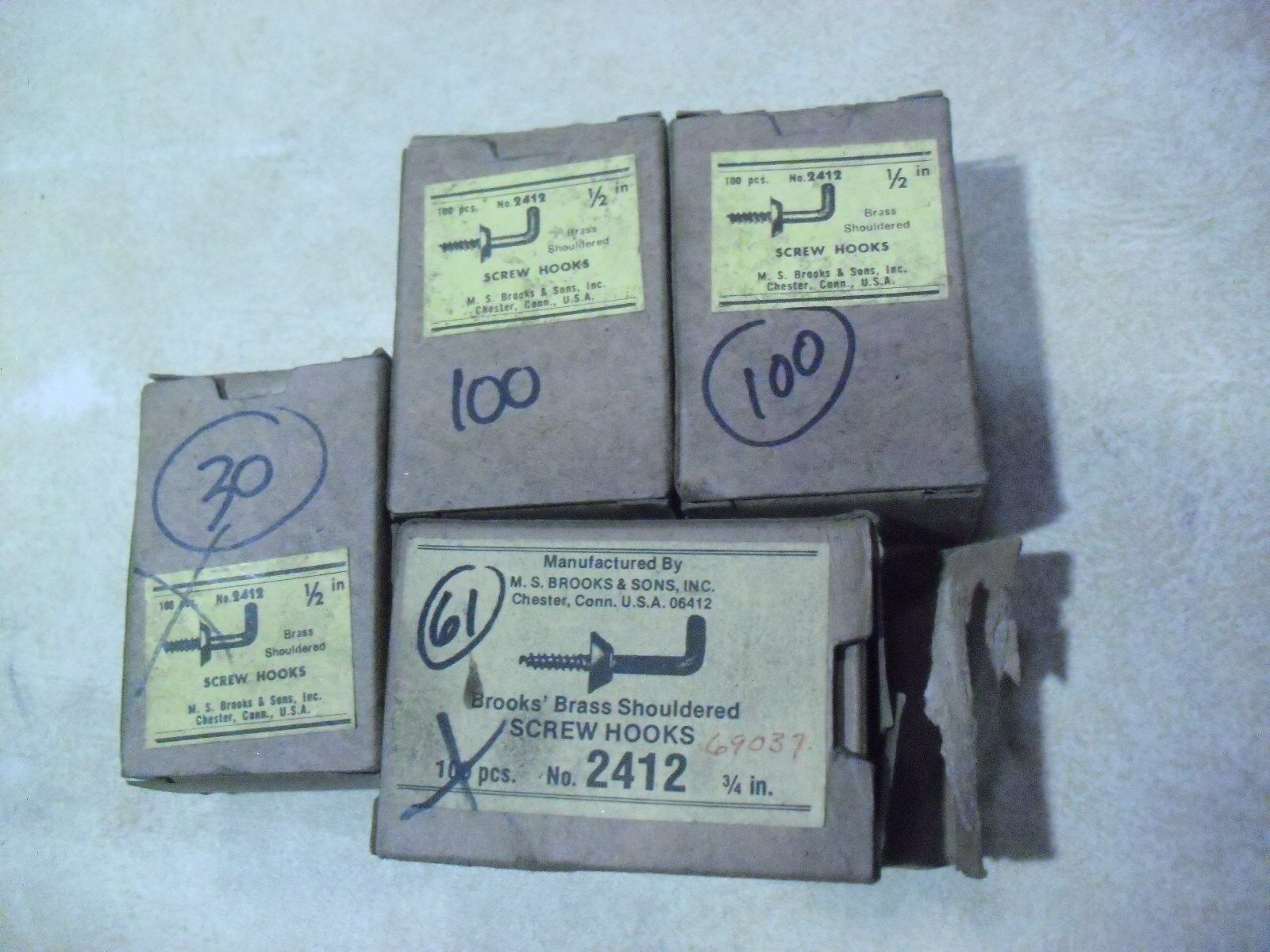 Title (ebay affiliate link): 191 !! M. S. Brooks Brass Shouldered Screw Hooks # 2412 Made In USA