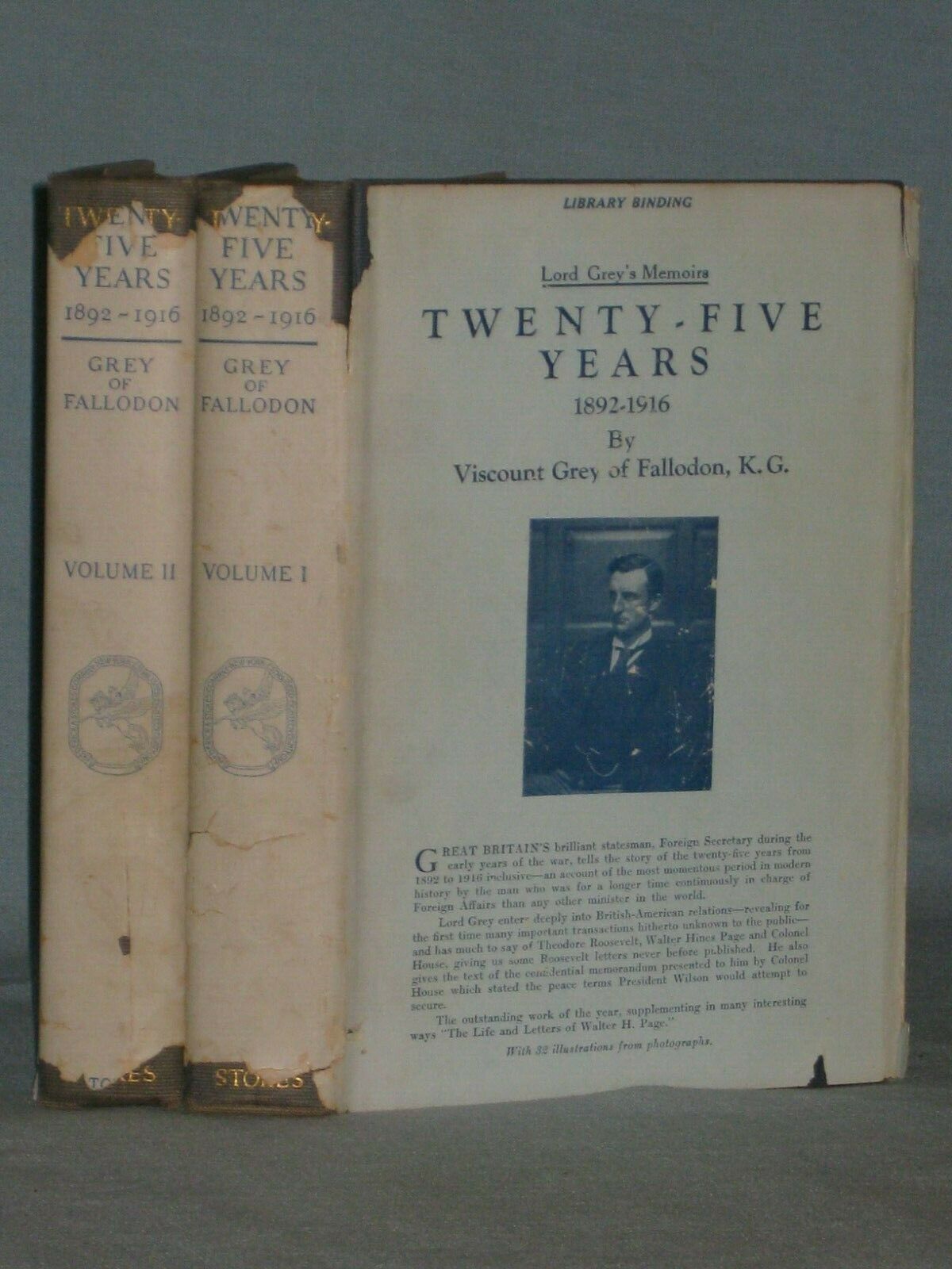 Title (ebay affiliate link): 1925 BOOK TWENTY-FIVE YEARS 1892-1916 IN 2 VOL. BY VISCOUNT GREY OF FALLODON