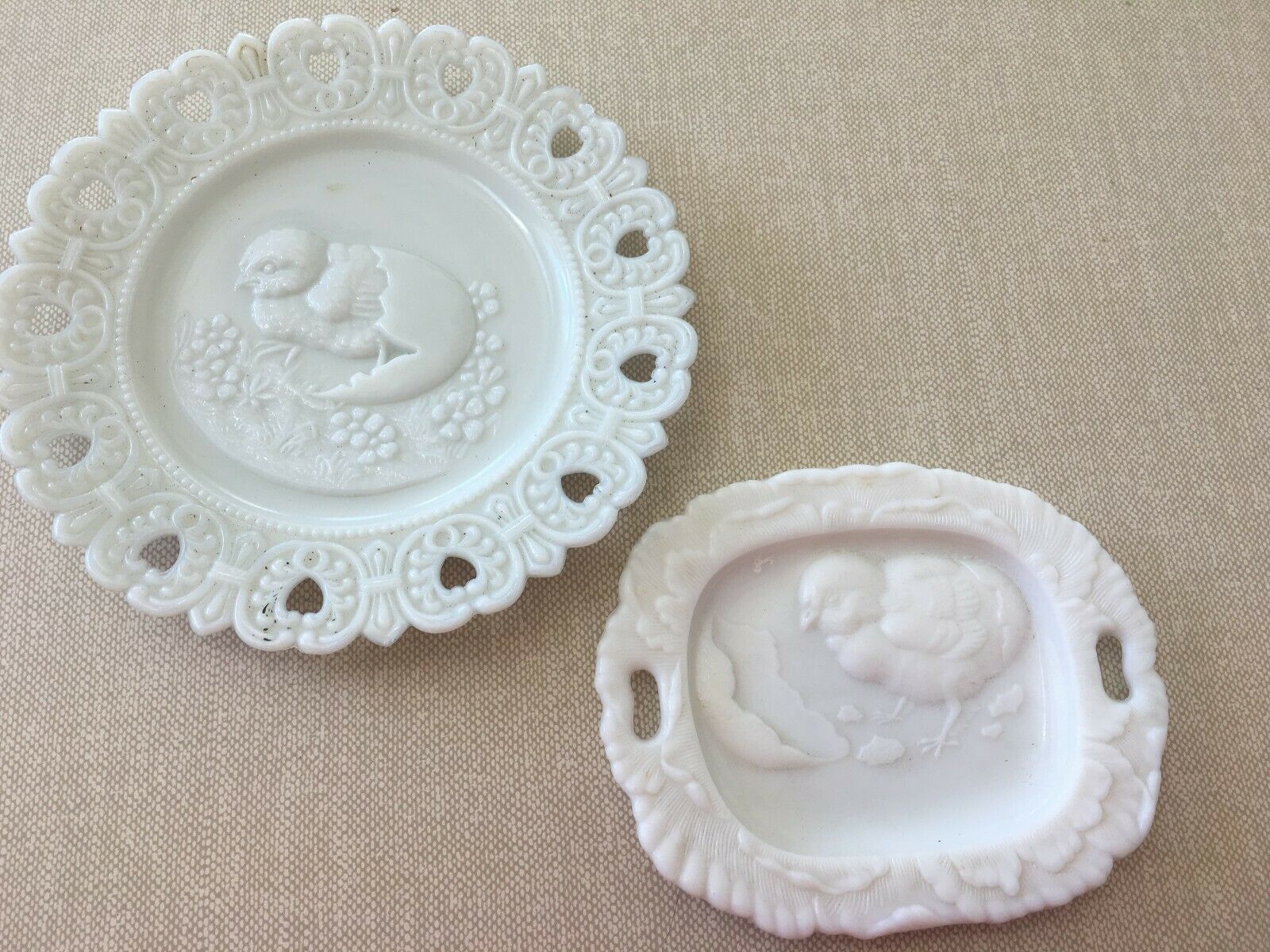 Pair of Antique Easter Milkglass Plates with Chicks