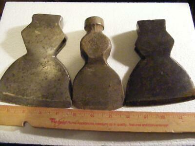 3 HATCHET HEADS 2 BROAD HEWING OLD ANTIQUE TOOLS WITH RUST PITTING