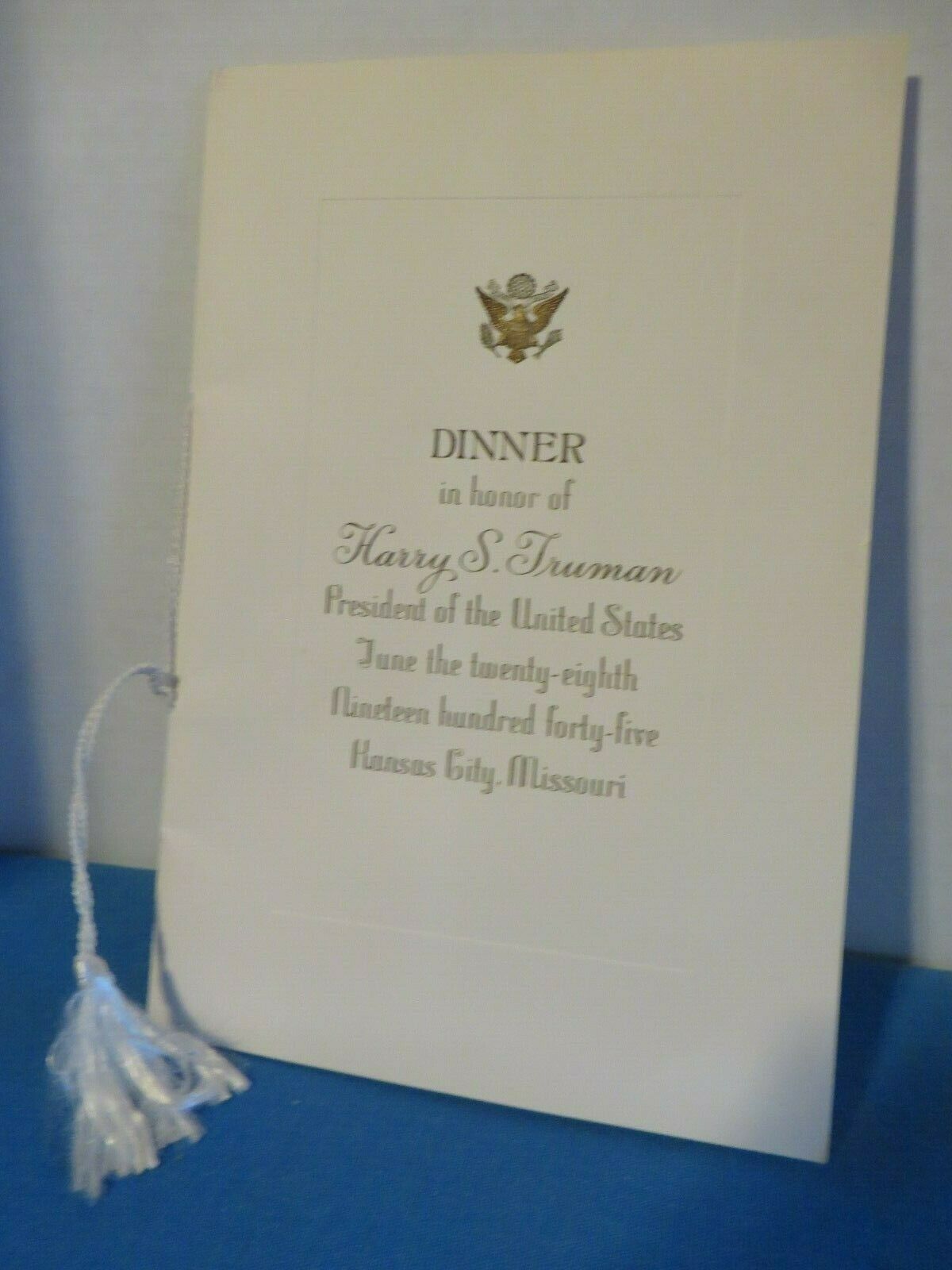 Title (ebay affiliate link): 1945 President Harry S Truman-Merchants Association Dinner Invitation Muehlebach