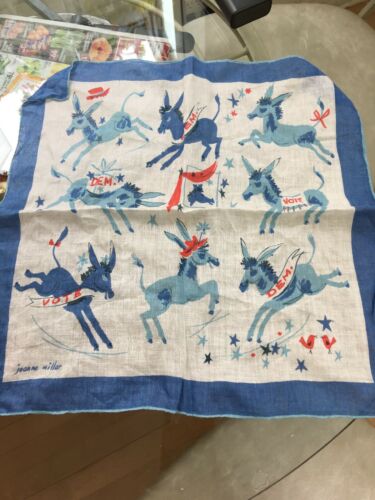 Title (ebay affiliate link): Vtg Linen Handkerchief Democratic Party Donkey Vote Jeanne Miller