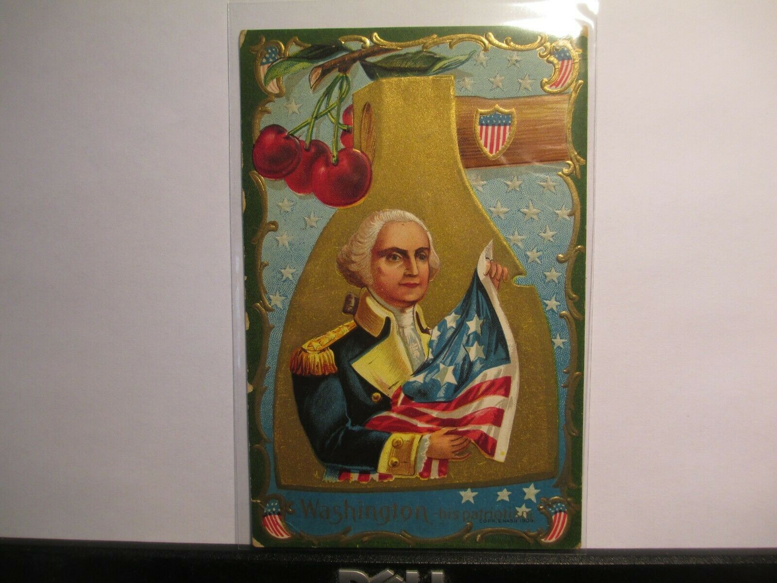 Title (ebay affiliate link): PRESIDENT GEORGE WASHINGTON Postcard Embossed 1910 Cherry & Flag