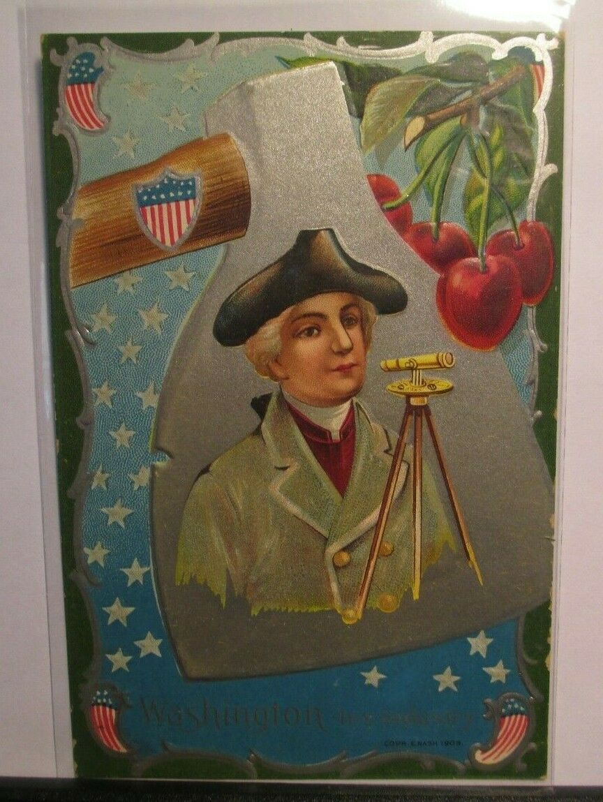 PRESIDENT GEORGE WASHINGTON Postcard Embossed Axe & Cherry''s