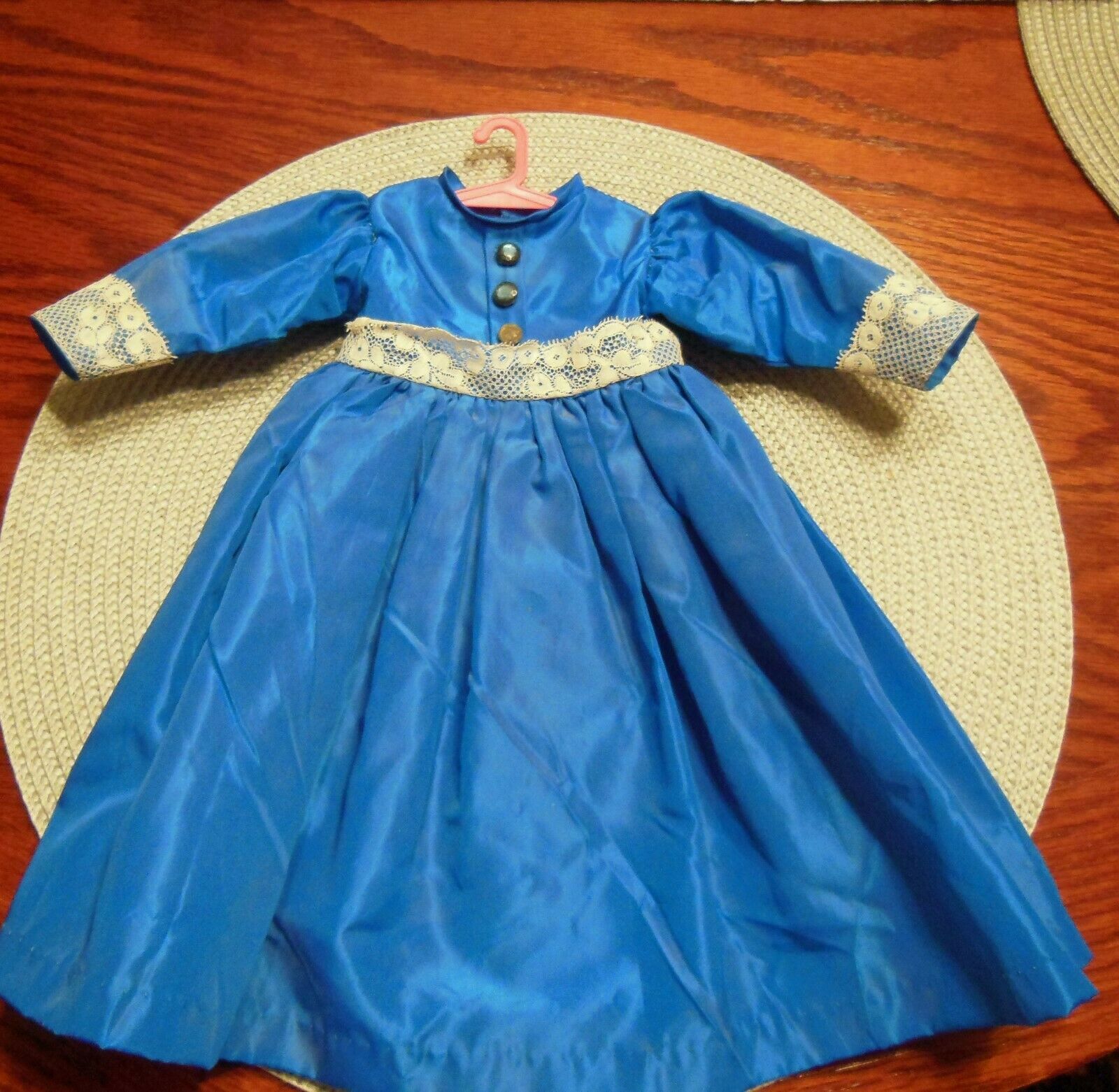 Title (ebay affiliate link): Sapphire Blue Taffeta dress for 16" antique bisque doll