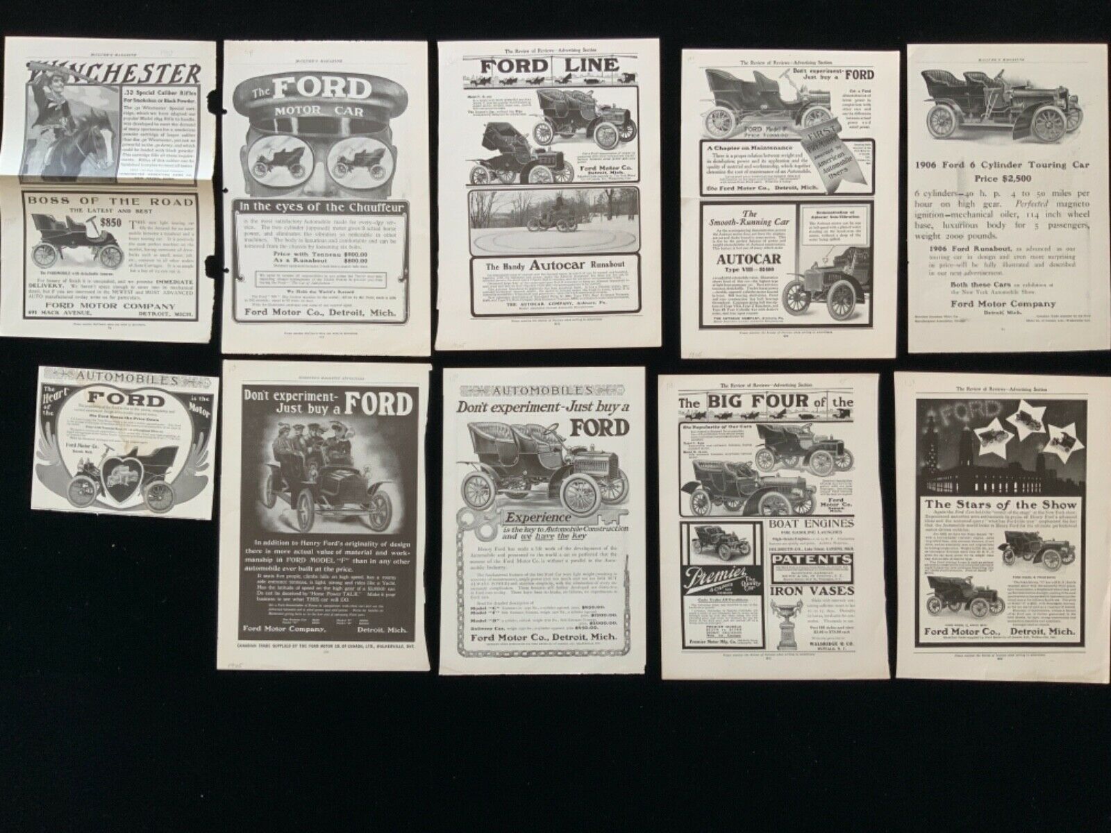 V Ford 1903-05 Ads Collection of 10 (27 Car ads in all front and back)11 1/2 x