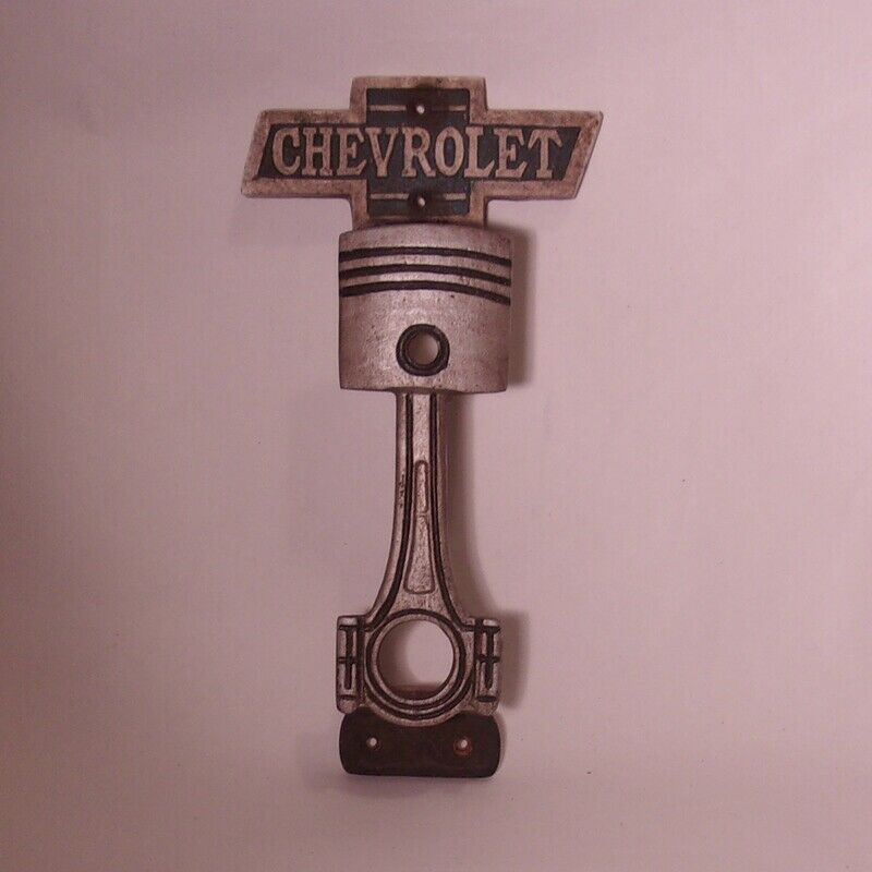 Vintage Chevrolet Logo and Piston Shaped Cast Iron Door Handle Pull Garage Sign