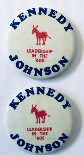 Title (ebay affiliate link): Pair of 1 3/4" Kennedy (JFK) Johnson (LBJ) Leadership in the ''60s Campaign Pin