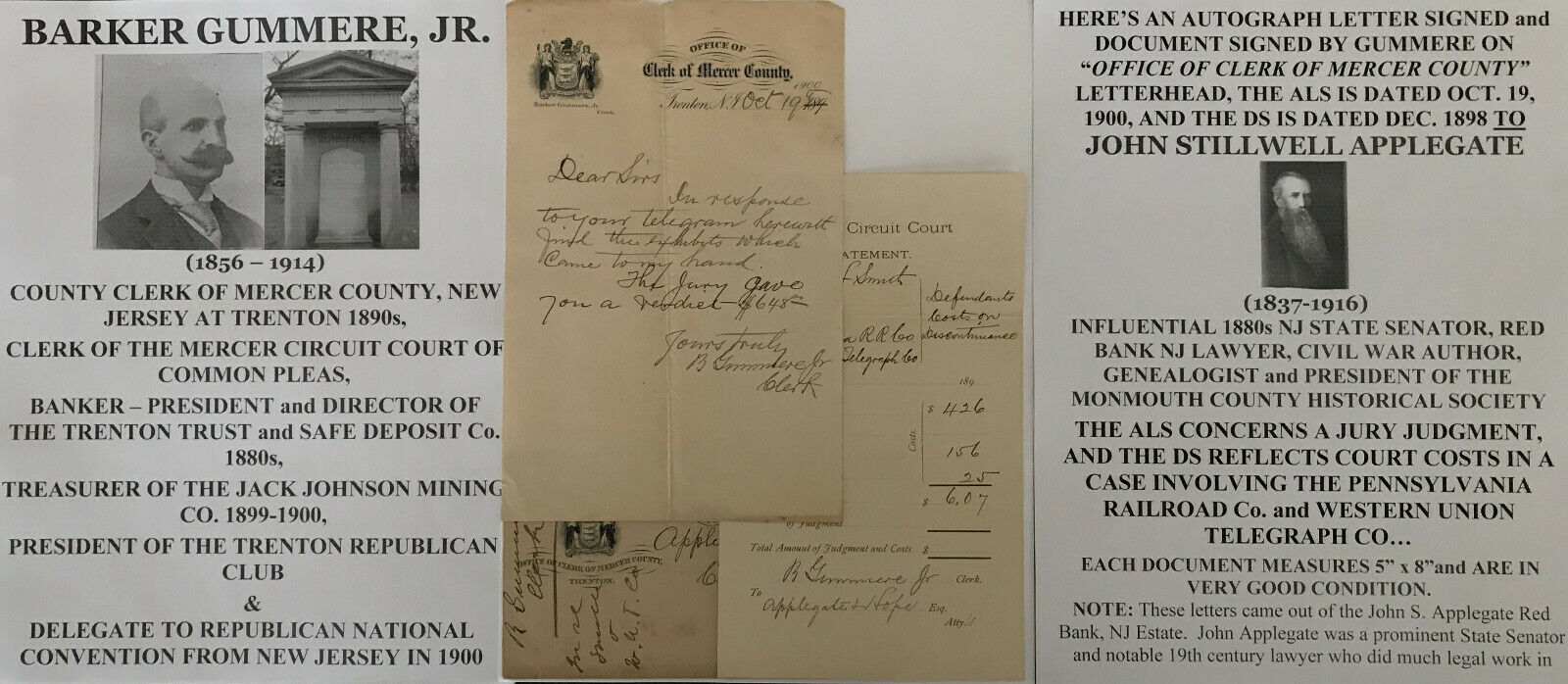 Title (ebay affiliate link): MERCER COUNTY NEW JERSEY COUNTY CLERK BANK PRESIDENT LETTER SIGNED TRENTON 1899
