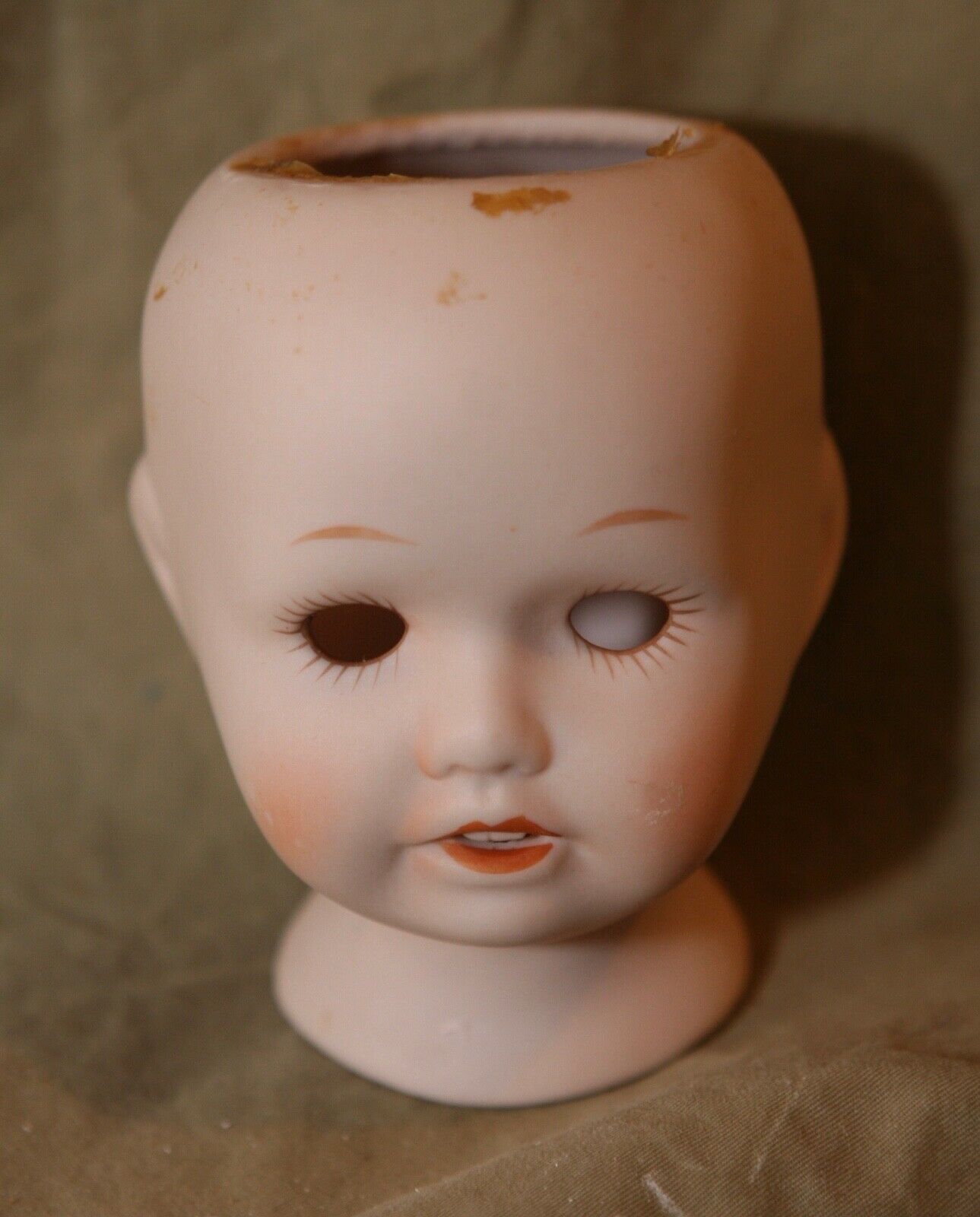 Antique 3" Ceramic Doll Head 3.75" Bust No Eyes Mouth Open Repainted? Unsigned