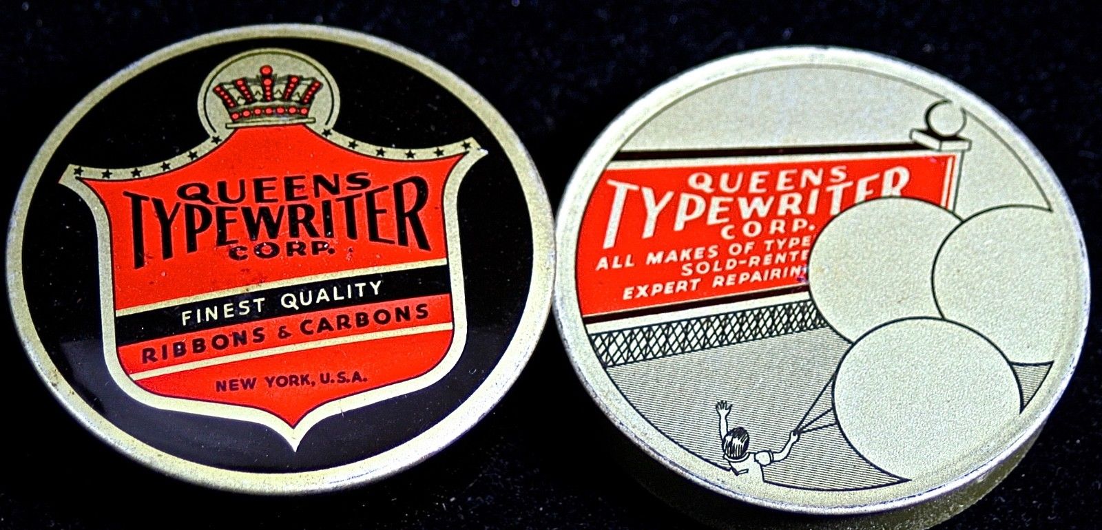 BOY WITH BALLOONS TYPEWRITER RIBBON TIN-- QUEENS TYPEWRITER CORP.