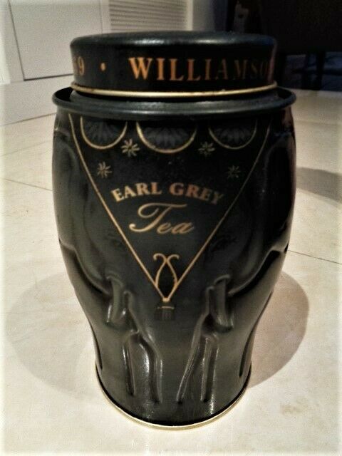 Title (ebay affiliate link): RARE Williamson Earl Grey Tea Tin Caddie Elephant Canister Dary Gray Black Empty