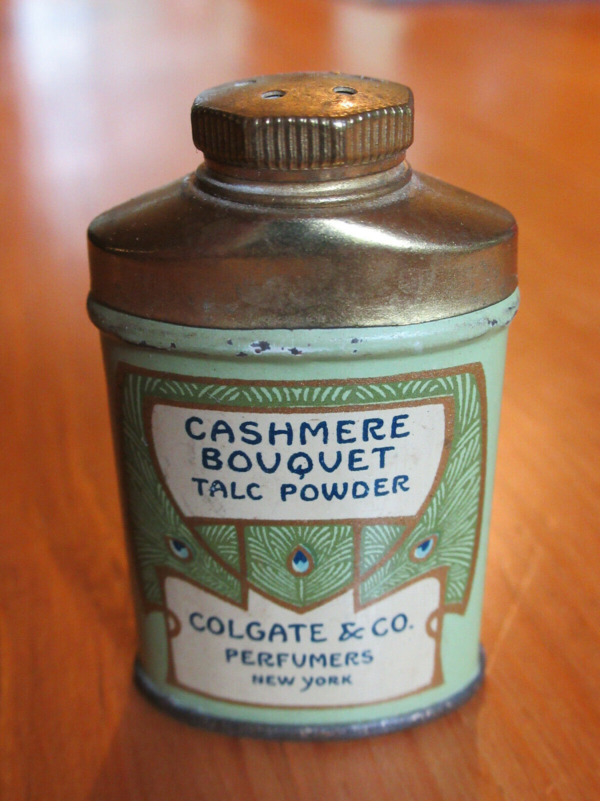 Title (ebay affiliate link): Antique Colgate & Co. Perfumers talc powder tin from the early 1900s