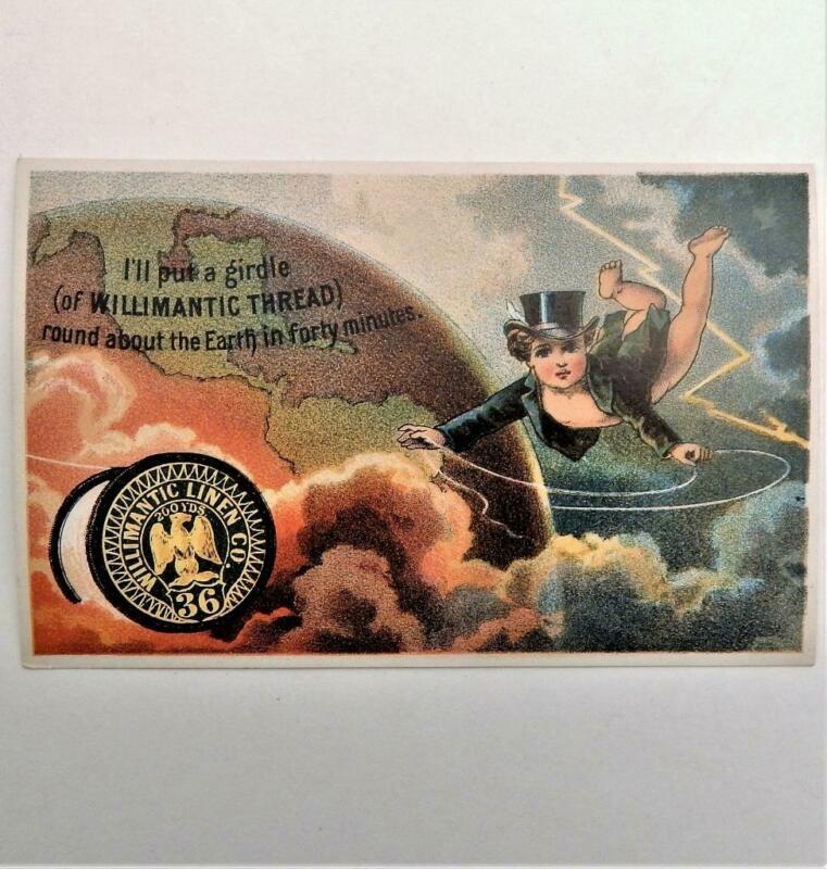 Title (ebay affiliate link): Antique Victorian Trade Card WILLIMANTIC SEWING MACHINE THREAD Cherub Earth